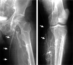 | Fig. 2 Preopeative venography. →: left great saphenous