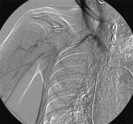 Arteriography; occluded right axillary